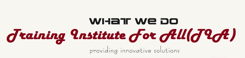 Training Institute For All(TIA) the leading learning solutions and professional services provider in India. Training Institute For All(TIA) is focused on meeting the growing need for Information and Communication Technology (ICT) expertise in both global and local markets. Providing its clients with IT Training, Corporate Training, Software development, Web Development and Consultancy Services. Training Institute For All(TIA) enables its clients to accelerate their business growth through more effective use of ICT in their respective industry.