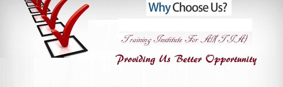 Training Institute For All(TIA) the leading learning solutions and professional services provider in India. Training Institute For All(TIA) is focused on meeting the growing need for Information and Communication Technology (ICT) expertise in both global and local markets. Providing its clients with IT Training, Corporate Training, Software development, Web Development and Consultancy Services. Training Institute For All(TIA) enables its clients to accelerate their business growth through more effective use of ICT in their respective industry.